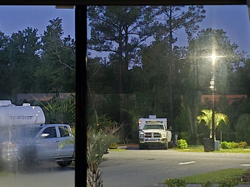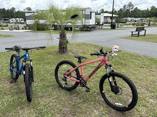 Ā Ā Ā Read moreThis is a wonderful RV park. The staff is super friendly and accommodating. Whoever owns this place should be thankful for this team because they made everything easy for the guests. It is quaint and quiet, and the people in the park are friendly. The pool is beautiful (we didn't swim) and they have a nice waiting area at front desk with magazines and snacks for sale. Apparently, there is a dog park area, but I just walked my dog. They do provide dog pickup bags, which is super helpful. It is a few miles from UF, we don't have a dingy car yet so we took Uber and that was super easy from the location. We plan on coming back often as our daughter is at UF and we would like to explore the area more. Also, this is super important as we don't have StarLink yet (just got a new RV) but the Internet is the best internet and never dropped, which is important because we work and have Zoom/Team meetings etc. Other parks we have been too have terrible Internet. In addition, I like that the RV park is gated so less likely for people to get into the park at night. Only negative, and not a huge negative is that we have a Class A Bus and we paid for a pull thru, but while it is a pull thru you can't actually leave that way. You have to back up to get out because of both the layout and concrete posts, which in this park isn't a huge deal and we were able to back up with no problem but for the extra money to pay for a pull thru, I thought it should be an actual pull-thru that we didn't have to back up. It was lot 150 for any of you with Class A buses. I would recommend calling and making sure that the pull thru is a true pull thru. (See Picture of what we were up against to try to pull thru--this is from our dash when we were trying to leave, there is clearly no room with the concrete posts and car in front of us).