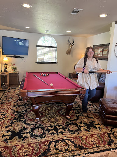 Activities: There was a lake outside in the backyard that our family loved fishing in. Towering Oaks provided fishing poles and tackle box. It was around 30-40 degrees throughout the weekend so we only used the hot tub. We look forward to returning for a day in summer to swim in the large pool. We brought a cornhole game out (even though they had one onsite) and played music while keeping warm by the outdoor warmers. In the evening, we selected a movie night, hot chocolate, and smores package for the back patio area. A large pool table in front of a flat screen TV in the living room accommodated our football fans on Sunday. There is a piano in the living room that we hired a pianist for on Sunday after breakfast.