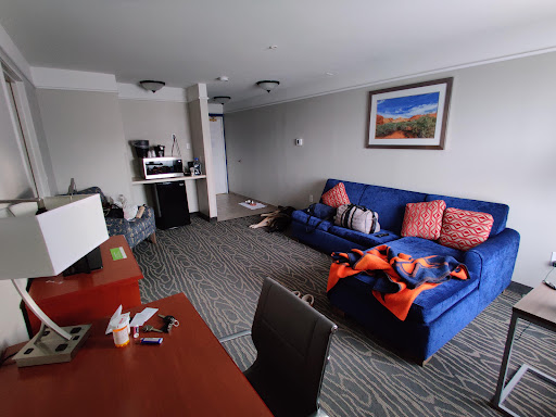 Read moreCheck-in took awhile, even though I had done it online the night before. Just one person working the front desk and an older gentleman just getting a room right then. Very friendly, welcoming staff, though. ||When I reserve hotel rooms, I try to do it through the hotel's website directly as often as I can, and I always ask for "top floor, quiet room please". There are 3 floors at this hotel and we got room 216, which is right next to the elevator. So, not top floor, and not quiet. So for this visit, sleep quality was poor due to upstairs noise, but otherwise the bed and pillows were comfortable.||My main issue is the dogs. I get being dog friendly. I, too, own a dog. But I also recognize he wouldn't do well in a hotel. Well, the 3 dogs (at least) that were on our floor also didn't do well in hotels. At one point, all 3 were barking. At 7 AM. (They were in rooms 206, 214 & 215). One large poodle was across from our room and for some reason it's owner thought it was cool to stand there with the door open and her dog would bark at every person that walked by. I'm not an expert at dogs in hotels but don't they usually try to put dogs on the first floor so it's easier to get them outside? ||Breakfast: the coffee was empty at 6:50 and they didn't start serving breakfast until 7. I waited for her to go check it or someone else to mention to her that it was empty and finally told her around 7:15 that it was empty. I waited next to the coffee station to be first in line for it because a group of what seemed to be hikers, or other outdoorsy men had their huge thermal mugs they were wanting to refill (I believe they are the reason it was empty so quickly to begin with). Just a reminder: there are coffee makers in the rooms. The waffle maker wasn't working right and didn't really cook the waffle we tried to make. And their choice of TV programming was odd, considering Gallup has such a high crime rate: it was some sort of murder-mystery reality show. ||It's a nice, new, clean hotel, though, so that makes up for the inconsiderate people that appear to stay there. But make sure you don't have a dog allergy or a fear of dogs if...