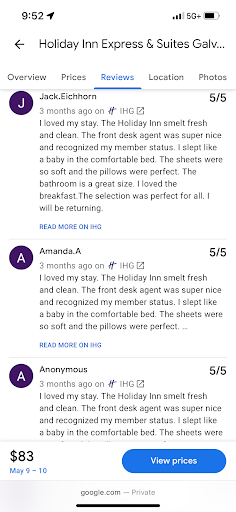 Ā Ā Ā Read moreThe staff was excellent and did everything they could. With that said, highly disappointed that I spent $300 a night for two nights at this hotel. It was advertised that you could walk to the beach since itās on the sea wall. However, thereās no cross walk within a mile and we were forced to cross 5 lanes of traffic with little kids without a safe place to cross. After we did that once, we said never again. We ended up having to pay an additional $45 to park on the sea wall. We had to get in our car and drive across the street from our ābeach frontā hotel. We chose to stay on the sea wall because we were traveling with two little kids and we wanted to walk across to the beach. We could have spent $400 less and stayed somewhere else since we still had to drive. Then there was the condition of the hotel. It was under construction. I would not have booked if I knew it was under construction. Do not claim it was storm damage. We live in the Houston area and I know that Galveston has not been affected by a major storm from the time I booked late May to now. Both sides of the front was having stucco work done. Then the pool was closed. We also booked because of the pool. Now to the condition of the building and room. It seems recently renovated but everything was extremely poorly done and obviously had corners cut everywhere. Carpets did not meet the walls, paint lines were everywhere, trim missing everywhere, poorly done patch jobs on dry wall, cracked tiles, missing grout, mildewā¦I could keep going. The floor in our room had major rolling slops. It was truly a safety hazard. I managed to get a picture of the floor where you can see it dip down, go up, and dip down again. The doors donāt go all the way to the floor so you can also hear everything in the rooms or in the hall. We were also given a crib with some type of fabric that was absolutely not a crib sheet. It was lose and a safety hazard for my baby. We also passed a giant dumpster with a dirty mattress hanging out around 8 or so times. The pull out sofa also had stains that looked like pee and blood on it.