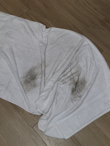 (Eta: The dirty towel was from me placing it under my feet and scooting it from the hotel room entrance to across the room to the AC unit. Also, when we got home that night we had to wash EVERYTHING that was cloth as it all...