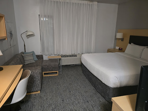 Read moreThis is not a 5 star hotel; however if you are staying for a long time and don't want to eat out daily, this is just about your only option. Several hotels in the area have mini microwaves and refrigerators, but if you want to cook more then from the microwave the kitchenette is a huge bonus. I have stayed at numerous Marriott's throughout the country some are better than others on many levels. The room is decent with kitchen. A little dated but everything works and it is cozy. This hotel has many conveniences; however, the biggest issue for me after working 14-16 hours is not being able to come back and find a parking spot. Very Disappointed with lack of parking. Semi cabs take 3+ spaces have been there in the same spots for 3+ weeks. Lots of construction type pick ups. Wouldn't be in issue but they consistently take up 2+ spots. Trucks with trailers are parking horizontal across 3 spots in the front of the building leaving little room for anyone with a normal vehicle to park. Several times have come back from work with only handicapped spots available, not wanting a ticket if the police ever come through; doubt the hotel will reimburse for that ticket. Decent breakfast. Some of the staff seem like they can't be bothered, but most are friendly. I've had several packages delivered to the hotel, as I am 'living' here for several months and I have only received 1 phone call that a package had arrived for me- this is odd, usually Marriott's are good about doing that. If you want housekeeping service removing the DND sign does not mean they will clean your room. I removed my sign today expecting a full clean since it has been awhile since having service, only to come back 13 hours later to a dirty room. They do not provide welcome gifts for their Platinum Elite members, nor do they provide complimentary upgrades like the Marriott Rewards site states. Close to just about...