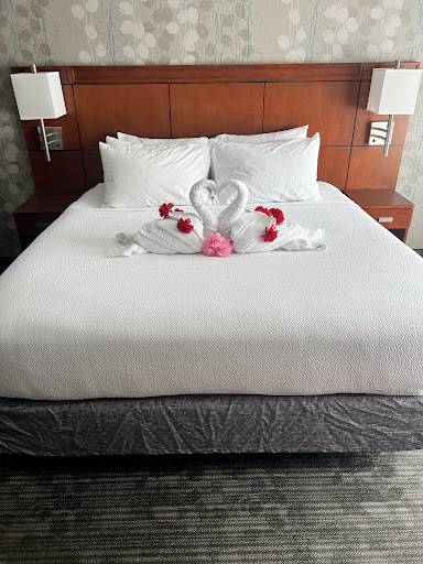 Read moreWhen booking I selected early check in and upon arrival (not much before 4pm which is normal check in time) I was told that they did not have a single room cleaned and to come back later. After coming back to check in again, I was told the room would not be refreshed or cleaned during the length of our stay which was a few days and that if clean towels were needed to come to the front desk. I went down to the front desk around 4:30 to ask for clean towels and was told there were none. The front desk lady asked for a room number and said she would deliver them in an hour. We waited for an hour and a half received no clean towels. We had to use our dirty towels that had been used a few times before in order to shower. Waiting on the towels made us late for dinner and if I had known she was not going to bring us any we would have showered much earlier. The air conditioner unit was the loudest I have ever heard and it was impossible to sleep with it on so during the night we were constantly turning it off to try to fall asleep for a few hours until waking up because it was so hot and having to turn it back on. The walls and floor are extremely thin and we had very loud people above us who were stomping, children running up and down the halls all night and you could hear the people beside us talking. Needless to say we did not sleep at all while staying here. I am a platinum member and have stayed at more Marriotts than I can remember and I can say that I will not be staying at this...