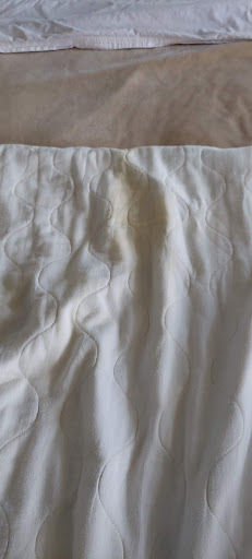 bad paint job in the bathroom, plus many parts of the bathroom seemed like they were falling apart. Ceiling and floor looked like they needed to be redone. There were holes in the sofa, and many cigarette burns and holes in the bedsheets. I couldn't really tell if they had cleaned it or not.