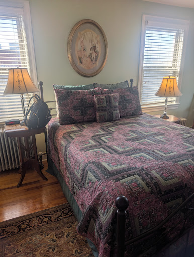 Read moreApril 22 2018. Upon arrival we go in guest entrance which is back door. The young lady helping us was nice, but our check-in took place in the laundry room. That was a first! We enjoyed the short tour with history notes. The amenities are nice. A complimentary glass of wine and 24/7 Coffee, hot chocolate and tea. We loved the look of our corner room: The Gettysburg Suite. But later realized the room is overly warm - so much so we can not sleep. (Isn’t that the point of having a bedroom.) It is cool outside, but windows can not be opened. The stifling heat is too much. We called for help - and a very nice person brought us a fan - which moved the warm air around. There is a/c - but I guess they were not going to waste the $$ when it is 50 degrees outside (wish we could have opened a window to get some of that lovely cool air). Sooo...our one day and night in Gettysburg is spoiled by not be able to sleep. We need to get up at 6:30 AM for breakfast and a historical tour before we leave for home - Seattle. Here it is midnight - and I am sweating too much to sleep. This suite is on a busy road so “white noise” is necessary to drown out loud trucks and motorcycles - but can still hear traffic. Bright street light and traffic light is just outside the window. Hmmmm...nope. We won’t be back and we can not recommend Swope Manor in April. Maybe when it is really hot - and they run the AC - it might be better. Not enjoying my stay - not because I am “Sleepless in Seattle” BUT because I am Sleepless in Gettysburg”. I chose Swope Manor so carefully; reading all the reviews. Well, the prior reviews were not useful in saving me from being miserable. I think they are more interested in saving on the utility bill than making a guest comfortable. I can...