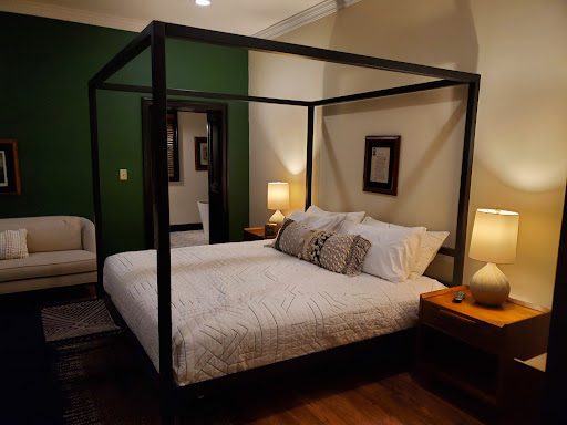 Through a set of double doors is the bedroom, graciously appointed with a king bed, sofa, dresser, clothes rack, and television. The bedroom and kitchen/living room have their own thermostat and the large ceiling fan in the bedroom ensured a very comfortable ambient temperature. We stayed in November and kept the room a little warmer during the day and a bit cooler at night.