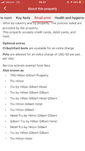 Read moreThis Hotel appeared to be fun and different but and was a new Hilton opening in Gilbert,AZ. I did a night night stay with myself and one other person, after the first night we left for the day, came back to find the room NOT cleaned very well at all - Ex: hair in tub, powder still on floor, makeup dropped and stepped on by accident which caused a black mark not cleaned, sheets not changed. Next morning spoke to Manager Alex Trompke - a young male which seemed like he could care less about our concerns, claimed it would be taken care of, left for day came back to the room now after day 3 and not only was the above nor addressed but no clean wash cloths were left, different hair in shower, the soap dispenser over the sink completely empty and new floor dirt like wrappers of hauls I drop apparently during the night still on the floor. I seen Alex AGAIN the following morning I asked if he followed up he said it’s not his job, it depends on the cleaning crew to get back to him. (Confused look on my face if they didn’t clean to begin with why would they eat themselves out) I asked as the Manger shouldn’t YOU (Alex) be the one to follow up - I was reinsured it was not his job. The next day we left we were promised all kinds of return credit card credits issued to find out THAT was a lie and they insulted me with offering 10k Hilton Points which I WILL NEVER STAT AT ANOTHER HILTON PROPERTY so points were useless to me. This wasn’t the gist Hilton issue iced experience- The Hilton line is totally out of control with FILT !! Please go to a different chain before you since into a Hilton vacation My brother travels for work is a Diamond club Hilton member because of his company’s choice and has a portfolio of FILTY rooms thru out different states of Hilton properties From New Mexico, California, Colorado Dprings, and the list goes on Take this as a person who cares and wants the word to get out HILTON IS NOT YOUR HOME AWSY FROM HOME. TRU by Hilton in Gilbert is going to go down fast with managers they have working there not caring about...