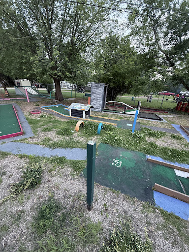 When I called 2 make a reservation I had stated that I wouldn't be arriving until 12 am when we booked a cabin. They asked how many adults, how many children, & any pets. I thought it strange that pets were allowed in the cabins but I was thankful after I confirmed with the woman on the phone that I didn't have to make other arrangements. I made the reservation & rcved the confirmation email. In the email it stated, "new policy no pets in cabins." I immediately called to confirm. When she checked she stated no pets in cabins. Can you imagine if I drove three hours with the dog to be told that I couldn't have pets in the cabin? See attached where it shows she selected two adults, two children, & one pet. They don't know their own policy. When we arrived at midnight we found our cabin locked w/a padlock. We went to the office to find a note containing a phone number. We dailed the phone number & the call could not be completed as dailed. Fortunately we found an employee wandering with friends in a golf cart & she was able to open the office & secure the key. Now with the way this cabin locks is w/a padlock from the outside. Anyone can lock you in! The lock on the inside is a slide latch that did not mate up. See pics. In the morning we set up our cooking grate over the campfire area. I call it that because it's just a clearing in the grass. It's not a fire pit or a fire ring. In the morning & afternoon the amount of golf carts being driven blasting music by people drinking is astonishing & carts being driven by children as young as we would est 8 to 10 yr olds unaccompanied by adults is equally significant. I wonder if their insurance is aware. We left for the day 2 visit local attractions & go into Peoria. We came back about 9 pm 2 find that the local drunks on golf carts had run over our fire pit & our cooking grate. One of the legs was bent & the grate bent inward. The firepit was 14' from the road! It took me over an hr 2 fix the metal frame, the leg, & reweld the grate after we arrived back home. The band was across from us & was pretty loud, we didn't know a band was playing across from us when we booked. Golf carts everywhere as they like to have a "parade." Great, drunks on carts. The band did stop at 10 pm however someone was setting off fireworks until 10:45. We couldn't have an enjoyable campfire. We stayed holed up in the cabin & we could hear the band clearly. The next morning I went to the office to complain about someone driving through our site mauling our grate. The attitude was one of what could we do. Um, limit drunks on golf carts! Sunday morning, we hurriedly made breakfast, squared away the cabin, made sure everything had been swept, clean & tidy, my wife & I went to the office to have them sign off on the cabin to make certain we recved our deposit. We wanted an employee to sign off & give us a copy in writing that the cabin was fine. The office worker didn't know how to open the cabin door! It is a rope with a dowel that you pull down on and the 2x4 latch lifts out of the pocket. She got snippy at us asking for the inspection and my wife shot back that our property was damaged and we have read prior reviews where they have kept the deposit without merit. The jumping pillow they say they have is nonexistent, the basketball hoop is downward at a substantial angle, the mini golf course is run down (there was a full garbage can with flies all weekend), the shores of the pond are filthy, the bathrooms are disgusting both men and women. In the womens there was a hairball the size of a rat my wife said all weekend, there's mold everywhere, in the mens there was a dookie in the toilet for at least a day. The latches are nonexistent in the mens room. The playground is run down. They cleared a gulley and put all the cut overgrowth piled up. This is by far the worst Campground I've ever stayed at in 51 years and my wifes camping with me for 23 years. Avoid this place...