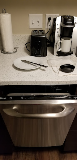 Read moreThis was probably the most disappointing hotel stay we’ve had in the last couple years. As vivid travelers we’ve stayed in multiple different hotel chains but the only thing the TownePlace suites seems to have mastered is the art of first impression-deception. The outside of this hotel is beautiful which drew us to it over the cheaper Hilton down the way (mistake, note taken on looks can be deceiving). The lobby is also very nice but the staff is a little less than inviting. We had to pull information out of the front desk attendant and the only question we were asked is if we are only staying one night. Not what kind of bed situation or anything on price, we actually were never told a price she just asked for my ID and credit card as soon as we walked in and asked for a room. When you go to stay at a hotel, a major aspect at every other one I’ve stayed at has been cleanliness - especially with COVID - something this hotel is severely lacking. Let’s start with under the bed, there are dust bunnies, food, and a sock. Which of your reading this and have recently stayed here in room 421, I would from the looks of it you have about a solid three months to come claim it before they clean underneath the bed (maybe more). We left it there for you, your welcome. Second and maybe the most disgusting is the boxed soap - yes, the BOXED soap. The box was stuck to the holder and I knew something was fishy, I opened the box and you could tell the soap was used. It had hair, indents, and dust ingrained into it. I’ve never ran into an issue like this anywhere I have stayed to date but here’s to firsts, right? Third, I’ll make this one quick, the towels had marks on them. They seemed like they were cleaned (maybe?)but again multiple stained towels, eh. Lastly, the breakfast here is terrible. You have a choice of bagged pancakes or a bagged waffle that you can microwave or some boxed cereal or a some other little plastic bagged items. All super disappointing. We’ve made a mistake by taking the more expensive, very disappointing, dirty hotel. Do not be like us. Go to the Hilton...