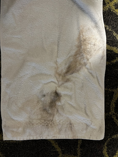 My first inclination was to find another hotel, but I had already unpacked all my things and didn't want to repack and move. I therefore took some towels and cleaned the bathroom myself so I could stay.