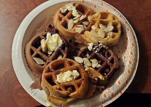 The best part: The breakfast: two waffle makers, omelettes, bacon, potatoes, fresh fruit and the usual. There was ketchup, hot sauce and real butter, chocolate chips and whipped cream. Everything was really good but they could've cleaned a table once in a while. I was surprised how yummy everything was.