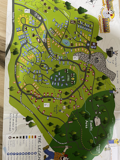 Minuses: $$$ Warning: they will charge you for every tent you put up. They charge by the "unit" not by the site. So if the fee is let's say $40 and you have an RV and two tents that fit nicely on one site, that's $120 per night!? WHY?! I found it downright impossible to get availability or to reserve a site before going. they never pick up the phone. I called over and over throughout the day and early evening on a Friday when I knew the grounds were open. All I got was a recording which didn't even have office hours. I asked at the desk when I checked in, and they acted like this is normal. no office hours posted on web site or given on phone recording. I had no idea if they allowed after hours check ins. No way to check vacancy/availability on their web site. no cooked food on site or very close by. As far as I can tell, nobody delivers there either. Definitely bring your groceries or plan to drive back to the Interstate to...