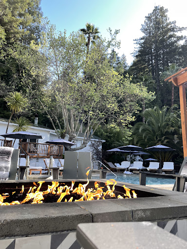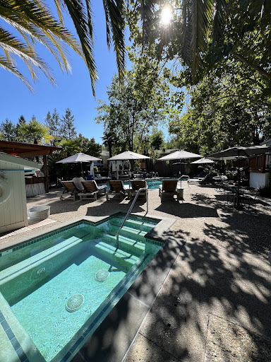 The spa, sitting right next to the pool, is concrete and typical of a built in a pool/spa. The temperature was perfect, maybe around 102 degrees. It felt amazing sitting there in the rain with the smell of the redwoods. The water was crystal clear.