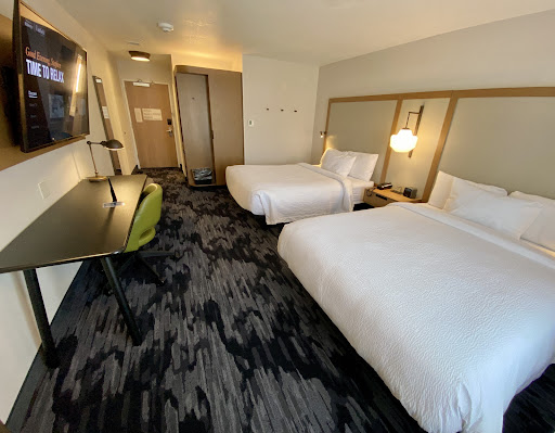 Β Β Β Read moreTraffic was backed up getting into town around 6PM. The front desk lady was nice. My room was on the 2nd floor. They had fall window coverings in the rooms to block out the light which was nice. My room was right next to the ice machine which initially ticked me off, but there was a long hallway upon first entering the room so there was not as much noise from the hallway. ||Other than that the room seems set up similar to other Marriott hotels I've been staying in. Again a large tv with a menu to go through to get to the actual channels. TV channels did not match the guide which was annoying. Large desk underneath the tv. Two large beds. The fridge and microwave were in the hallway. Again a tiny fridge that doesnβt seem to work unless you push the super cool button. The microwave was high up on a shelf but not over my head like a previous place. ||Bathroom was huge. At first I thought there was no hot water, but it just took a while. Pump bottles in the shower that were nicely scented with lavender and eucalyptus. Good water pressure. The towels were huge! ||There are grocery stores within walking distance but I also used the market by the lobby for something to eat in my room after a long day of hiking. Will definitely stay here again! Love that it...