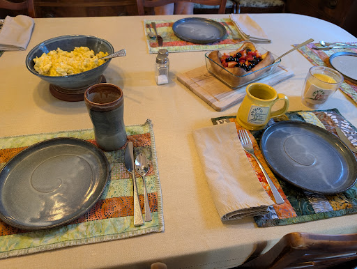 Elmwood is absolutely worth visiting for an event and/or staying overnight. From the warm welcoming of the outside farm cats to the gracious hostesses Selena and Lettie will certainly make you feel at home. Their b&b is clean, spacious, serene, and cozy. It was a very peaceful environment with beautiful views which added to the relaxing stay. They are from the area and would be able to recommend many activities & restaurants to suite your fancy. Samples of refreshing soaps and lotions were available in the room that Selena crafts. Coffee and hot tea were available at anytime. Breakfast was delicious with a savory crepe flavored perfectly with every bite and a sweet crepe that was divine with their special ginger sauce. We had an unexpected heavy snowfall in the morning in which Selena plowed us out of the driveway and down the road to make sure we were departing safely. Lettie had even cleaned off our car before we came out to load our luggage. Overall, I cannot say enough good things about our stay and events we had attended in the past. This is a must stay for anyone who is looking for a b&b where you will be able to relax and enjoy every minute. Thank you both again for your thoughtful and generous kindness...