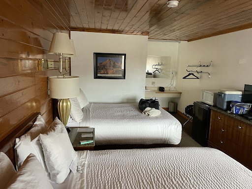 With Hanksville as our destination, lodging was a bit limited. The Whispering Pines was one of the few motels in the area. Other lodging contained more expenses cabins at campgrounds and other sites. It was surprising that the room rate was around $160 for a motel, but that was the cheapest option in the area. The Whispering Pines is conveniently located on scenic highway 95. In fact, the drive into Hanksville from the east is one of the most beautiful drives, we have ever experienced. It had plenty of off-street free parking with turn around space for larger vehicles. It is a retro motel, so you can park right at your door. It is comprised of two buildings -- one of which is two stories without elevators so consider that when booking your room. We had booked online and the check in was efficient and fast. The room was spacious with a large king bed, plank floors, and a separate vanity from the toilet and tub/shower. There was a lounge chair and a separate desk with chair. It was a clean room and generally clean grounds. It is near a gas station with conveniences including a burger restaurant. Across the street is a more upscale restaurant near the Roadsideamerica.com attraction the Hollow Mountain Gas Station -- an operating Sinclair gas station with its store in a mountain cave. Hanksville is a great central location to take in many of the sites in the area. It is very close to the amazing Goblin Valley State Park. The room had a mini fridge with no freezer section and a microwave. There was a hairdryer but no iron and board. There is a free reliable ice machine. Internet was free and reliable. There was not breakfast but a breakfast food truck was open nearly by. There is also a coin operated laundry. The motel was relatively quiet throughout the evening despite being...