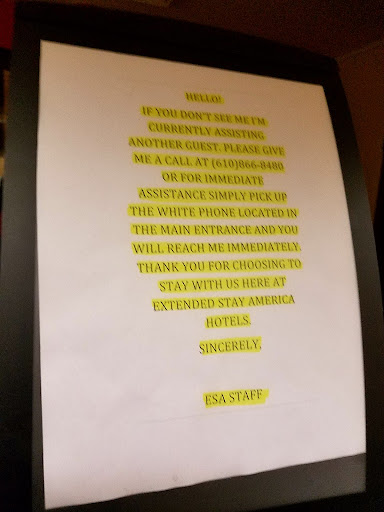 Read moreI stayed at this hotel for 3 months, my room was entered by staff on numerous occasions, I had a second car that was almost stolen by staff that was looking for a key to it because I would not sell the car. I had 2 cameras hidden. They gave an electronic door key to some guy who though I was not there because I moved my truck to another location and waited inside the room. I left a do not disturb sign on the door when this guy knocked, i answered he left in a hurry, when I watched him leave; he left with one of the weekend cleaning ladies. She gave him her key to my room to search again. She came the very next week, she knocked, I opened the door immediately, she jumped 5 feet. She was very nervous because she knew I knew. At least 5 other employees knew about the scheme to. This is a crime waiting to happen; extended is not responsible for what happens in that room to anything of yours per their policy, since they proved an adequate lock they say. Their own staff has access to any door at any time without approval. A desk guy can make any key without it being tracked, Logged or anything. This means anyone can have your electronic key made by a staff member! Here is the loop hole, and then extended does not offer a locking safe for your belongings. Only the door lock, that any employee can have or give to anyone one at any time. How safe is that at extended stay Bethlehem for 1200 a month. Then there are no cameras to monitor any of the exits the vehicles or anything anywhere. No safety for the customer. Thanks for the great stay...