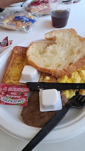 The interior of the hotel had a weird smell and looked very outdated. None of the complementary lobby items were available. No coffee, the lobby fire place was not working. The staff was very nice. I can only remember Yessir's name. He is who we spoke with to advise that we would NOT be parking in the back lot. He assured us our car would not be towed since we made a "makeshift" spot. The breakfast was limited and not very inviting.