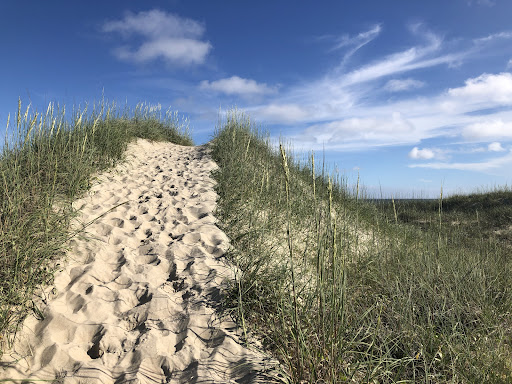 An awesome campground for those who enjoy privacy, simplicity, and roughing it a little. I can say if you prefer big chain campsites with cushy facilities, I don’t recommend this place. But it’s awesome, a little bit of a walk from the beach but easily walkable from every campsite. We had a great time, but after a walk around the campground I think your experience could depend on your campsite. While some of them are flat, large, and mostly sandy, others are uneven and short, and a small site with less privacy. Personally I recommend booking on the upper loop on the hill (P sites) if you more value privacy and views of the dunes (again, hit or miss), the bottom loop if you’d rather be closer to the beach and don’t mind neighbors, and the connecting streets not at all. They’re steep roads, short sites, closely packed in, and tend to be uneven. We booked P61 and it checked pretty much all the boxes. Staff at the front gate were friendly but nothing special. I found the restrooms & showers very helpfully located on connecting streets. Clean, but again nothing special. Beach access is probably a five minute walk across some water and then over the dunes. When you arrive, you’ll find a very pretty beach, but keep in mind it is drivable and therefore there’s almost always trucks parked on it. The beach is awesome, especially if you enjoy shell-collecting and body surfing. There are no hookups at the campsite ! I’m sure it says somewhere but if you’re one to skim the details, you might miss this. There is water centrally located, but the dump station is off property. There are also no fires aloud in the campground, but on the beach they’re allowed. Campsite has a nice grill and picnic bench, although some campsites have them in a bad location relative to the paved parking pad. Overall, I would say I would come back here and recommend it to anyone traveling to the Hatteras/Frisco area. It’s a good...