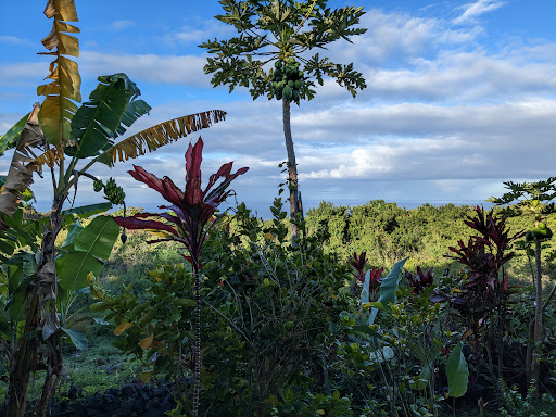 Read moreIt's a nice place to stay and enjoy the nature setting of its location. There are three rooms, each with a large lanai with views of the ocean and lush vegetation. They are great spots to watch the sunset. There is a couch and two comfortable chairs plus a dining table and two chairs on the lanai. There is also a refrigerator there. In the common area there is a microwave, some dishes, can opener, tea and a tea kettle and utensils. Beach chairs, boogie boards, mats, beach towels, a beach umbrella and snorkeling equipment are available there to borrow. The ensuite bathroom has a shower that is fine. Shampoo, body wash and conditioner are all provided, as well as liquid hand soap at the sink. The room itself is small and simply furnished, but with the lanai and the common area this is not a problem at all. There is a ceiling fan and plenty of [screened in] ventilation so the temperature was comfortable. There didn't seem to be any mosquitoes and we sat on the lanai at night with shorts on and no insect repellent. The hosts and their dog are nice. Carl gives you a map of the area and gives a detailed description of places to see and things to do. It might be a good idea to record it to retain all of the information. Breakfasts is served at 8:00 AM and they are very good. We were there six nights and the breakfasts were never the same. They always included fruit. They have several papaya trees that provide some of the fruit. The breakfast is served up on the top deck with excellent views and nice plants. There are two bird feeders that Carl fills up each morning and it's nice to watch the activity while you eat. Very many Java Sparrows (an introduced species) dominate the feeders- jockeying with each other for access. Saffron Finches and Cardinals also make appearances and sometimes manage to grab some food. We also had beautiful Gold Dust Day Geckos come onto our table at breakfast. The frogs (mostly Coqui- an invasive species from Puerto Rico) are very loud all through the night. It didn't bother us but some may be disturbed by them so you may want to...