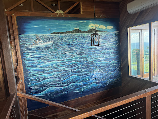 The rooms: First off, the rooms are spacious and full of incredible details. Sue is an acccomplised artist and my room (top floor garden room) was full of vibrant art including a spectacular mural scene in the bathroom and the cool paintings throughout the top floor. Rooms are very well appointed with mini fridges, modern a/c units, ceiling fans, and spacious on-suite bathrooms with awesome rain shower heads. Beds were really comfy. My dad’s room had sweeping ocean and farm views. Sue’s husband is also an accompliahed wood worker and you’ll find his incredible work, literally from floor to ceiling around the space.