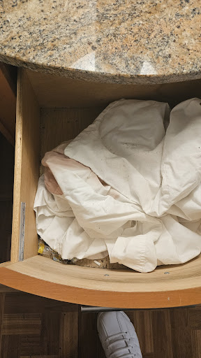 I much appreciated the compact fridge, microwave, and large TV. I was impressed with the two nightstands. Each had two electric outlets and two USBs– in addition to the multiple outlets around the room. There was a mini coffee maker, sturdy paper cups, creamer, sugar, and various kinds of coffee. Although economy quality, these were thoughtfully supplied: a packet of body cream, small bar of soap, and packet of shampoo. FYI, open the shampoo before you get your hands wet.