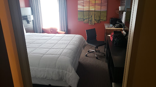 Pros: Staff was very accommodating, working with us to get early check in as well as making sure we had rooms on the first floor as some in our party have issues with stairs. Beds were comfy, especially the oversized comforters. Sink was outside the bathroom which helps while getting ready with more than one person. Location is excellent, right off the freeway and just minutes from the town square. There are parking spots right outside the door which is convenient. No restaurant, but Door Dash, GrubHub, etc will deliver right to your door. Also there’s a nice coffee shop across the street and a nice martlet close by with great food.