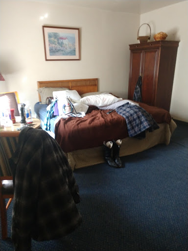 Finally, we had a chance to check out the bedding. The spreads have numerous holes from longtime wear (included a picture of a few of the holes). I found a used toilet paper roll just under the edge of the bed (included picture). The lack of any type of deep clean before renting out a room is very worrying - I don't want to worry about what sickness or bedbug I might acquire from a previous guest after a superficial cleaning, and that was a definite concern for me here.