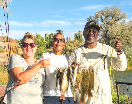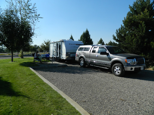 Read moreGreeted by a crusty older gentleman in a "NAVY"baseball cap who had a big TRUMP banner tacked up to his front porch. ||||Anyway, about the park. ||||This is a very nice and clean little park that is well maintained. It's located close to the freeway and the spots are very reasonably priced. Our host regularly patrolled the park keeping a close eye on everything. Good free internet and the cell phone reception was good. There's a well stocked "Smiths" grocery down the street which is owned by "Kruger". Fuel is reasonably priced all around town. People aren't big on wearing virus masks in Burley.... which is a shame. We felt safe during our stay here. ||||If you have a larger 5th wheel RV with the pull down stair ramp be sure and plan things out BEFORE you unhook. The sewer dump tends to be at the back of the site so you might needs some extra sewer hose, and there's a concrete patio slab on the passenger side which interfered with where we planned to drop our ramp and prevented from closing our entry door. It took a couple of tries but we finally figured out we needed to be as close to the curb as we could get on the drivers side and forward of the concrete slab on the passenger side to be able to lower our ramp low enough to be able to close our entry door. ||||I would have given Riverside RV Park a higher rating if it were not for being located directly in the glidepath of Burley airport. We had private aircraft, and crop dusters coming over a couple hundred feet over our heads at all times of the day and evening. Also, there was a really noisy blue helicopter, that I assume was giving flying lessons, come over about 200 feet over our trailer at least 20 times in a row on Saturday and Sunday. He did finally quit at around 5PM.||||It was about 85 degrees the three days we were there and our spot had absolutely no shade in the AM or PM but some spots do have shade trees so you might ask ahead.||||There's a city park and play ground across the street from the RV park and it's a short walk down to the Snake River water front where you can walk the bike path, rent a kayak, or have a picnic. The problem was that park residents kept cutting through our RV spot to get there and we did'nt feel safe in leaving any personal stuff out like BBQ's, wind spinners, or lawn chairs. ||||There were parties in the city park across the street all weekend... up and until it's closing at 10PM. Some of them got pretty noisy but all in all it wasn't too bad. Lots of people milling around in the street behind...