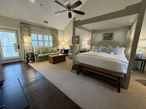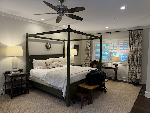 In terms of the accommodations, we were initially a bit surprised at how rustic things were, but once we read up on the history of the cabins (we stayed at the Tavern Suite the first night, and the Justice Cabin the second evening - the latter was our preference, but both were very comfortable) we came to really appreciate how interesting the setting was. Despite that somewhat rustic appearance, the amenities are up-to-date and we were particularly enthralled with the jet therapeutic tubs at both locations, along with the beautiful wood fireplaces. It's worth mentioning that we are both extremely picky about cleanliness anywhere we stay, and both agreed that while we normally would never travel without our own linens especially during COVID times, this was the one place we had been in the last year where we didn't even think about it once. Everything was spotless and in great repair (aside from some very minor issues I mentioned to them upon checkout), and that juxtaposition of the rustic exterior with the hand-hewn timbers, alongside the well-kept and modern amenities inside, was very well done.