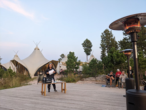 Read moreWe recently stayed here for 2 nights in one of the stargazer tents. You have to drive down a long, bumpy gravel road to get to the tents. Once you arrive, you go to the reception area to check in. The reception area is located under the same tent that the restaurant is located. Once you check in, you have to wait for an employee to drive you & your luggage to your tent on a golf cart because there's no way to park at the tents due to their location "in the woods". We had to wait several minutes before the employee arrived to take us. Once we arrived to the tent, we immediately had to start a fire in the wood burning fireplace because it was so cold! They provided ample wood & fire starter but they offered no amenities at all besides shampoo & conditioner. We paid a lot of money to stay here as we like to book unique properties but this was the worst "unique" property we have ever stayed at & we 100% regret staying here for the money we paid! We only received 1 towel and 1 washcloth each for two nights...there was a rug as soon as you walked into the tent that was covered in leaves and dirt. The floor didn't appear to have been swept as it too was covered in leaves & dirt. The tent had no electricity so we were given 2 battery operated lanterns and 2 battery packs were provided to charge our phones. The tents are very close together & our first night we had a young, twenty something couple staying in the tent next to us that was screaming & yelling profanities at one another for what seemed like hours. It was around 10:30 pm and I tried calling the front desk 5 times & left a message but no one would answer the phone or call me back. I finally got someone to answer the phone & told them what was going on & they said they would be right down but before they arrived, we saw another guest go over to the tent & tell them to be quiet. The employee did arrive & went to their tent to talk to them & we never heard them again after that. However, the tents are so close together that you could hear everything. Our tent was also near the gravel road so we heard cars coming & going all hours of the night. There was one car that arrived around 3 am & blew their horn as they were driving down the road. There was no sleeping here as noise went on all hours...esp early morning. The place has like 60+ tents & was full of families with screaming & crying children every where! This is definitely not a place for a "romantic" getaway. We had a tent that had a shower and toilet...some don't. To take a shower, you had to keep the hand held pulley pulled down the entire time to keep the water running....it's not easy taking a shower with one hand. My hubby had to get up all through the night to keep wood on the fire so we wouldn't get cold. In our tent, we had a king bed, 2 chairs, 2 night stands, a wooden trunk at the end of the bed & a shower & toilet. There is no way to secure your belongings in the tent...anyone could go inside while you were gone if they wanted to so we ended up taking our valuables with us when we would leave & then stuck the rest of our belongings in the wooden trunk. I felt uncomfortable trying to sleep in a tent that wasn't secure. The restaurant had a super limited menu with like 4 items to choose from on the lunch/dinner menu & limited breakfast items as well & the food was very expensive so I recommend you eat in the town of Keystone. You do have a view of Mt Rushmore right outside the main tent but it's definitely from a distance. When we checked out, I was prepared to let them know how I felt about this property but no one asked us how our stay was when we checked out. Had I been able to get my money back, I would have left after the first night. I don't like paying over one grand to stay somewhere that's not clean, not safe, loud, cold and can't take a shower without holding a pulley system. I've read that some of their properties don't allow you to keep any food in your tent. Since you have no electricity, you can't blow dry your hair without having to use the...