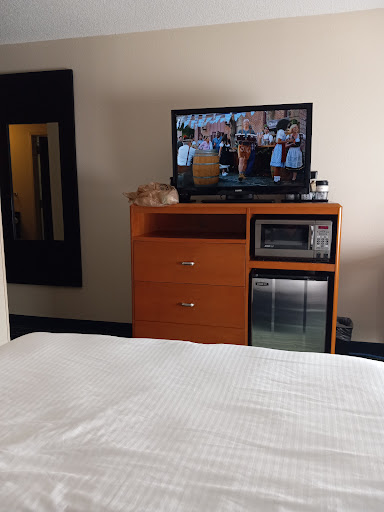 Read moreMy husband and I stayed here for 11 nights. Over the course of 2 weekends, we were in town for Bourbon and Beyond and Louder than Life music festivals. The hotel was okay, not great. Our room was on the 2nd floor. Upon entering I noticed that only had 1 small chair, no couch or coffee table... which was a little odd because we had a 1 king bed room... but not a huge deal, we can just sit in the bed. The tv was really weird, when turning it on the volume was at 100 every time so we had to hurry and turn it down and it was on a static channel every time. I had to do a search for the channels...which was a joke. I had to literally do a search for channels every time...then the remote buttons didn't work half of the time to change the channel so it was whole ordeal everytime we turned the tv on. Once I found the guide on the tv, I made a list of the channel numbers so I wouldn't have to just search for channels everytime...that didn't work either because the guide numbers didn't match up to the channels. It was a mess and super annoying. I planned on calling the front desk to ask them about it and couldn't because the phone was hooked up. There was no cord going to the wall! So, I went to the front desk to talk to them about the tv/ remote problem and I got batteries for the remote (which didn't fix the remote response problem) and they said they were getting new tvs but hadn't gotten them all in yet. I told them about our phone not having a cord also. A few days later we come back from being out and there was a cord on our phone!! Meaning they came into our room without us there, which I really didn't like at all. Back to the tv- we were there for 11 nights so it was super anmoying having to deal with that tv issue every single time we wanted to watch tv. Also when we were there, it rained like crazy and we woke up one morning and noticed the floor by the window and about 6-8 feet out from the window was soaked and I mean soaked! My husband had his bag and some clothes sitting on the ground ( because we didn't have a couch or coffee table to set anything on!) and they were all soaked... so I went the front desk and told the lady about it and she said yeah some of our rooms do that, the best I can do is give you some towels...so she gave me towels. We had already used every towel we had trying to dry it up. It was crazy!! The breakfast was lacking, the coffee was not good. The ladies at the front desk were nice and the location of the hotel was great but that's the best I can say about it...