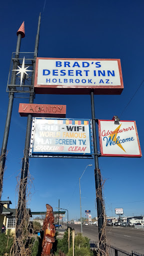 Read moreBrad's Desert Inn is a fun and friendly blast from the past! Our car broke down at 8 pm at the exit right before Holbrook and when I called the Inn, the front desk clerk offered to pick us up and did so, bringing all three of us and our luggage back. How amazing is that? You don't get that level of kindness at a chain hotel. She then helped us feel better with some comforting ice cream bars, cold water, and walking us to our room. We stayed in the Grand Canyon room and added an extra day trying to find a rental car (found it in Show Low 49 miles away.) With the extra afternoon there, we got to visit the Petrified National Forest. Talk about a super blast to the past: the logs are way older than dinosaurs! We also got the chance to find out how old-timey and charming the entire teeny town of Holbrook is by eating at Maesta's for lunch (liver & onions and meatloaf!) and The Butterfield Stagecoach restaurant that boasts pine booths with long horns attached and outlaws described on the walls. We continued on to Colorado to drop our son off at college and on our way back, my husband and I stayed at Brad's again, this time in the Flamingo Suite. It's adorable! Flamingo touches everywhere and the kitchen and bathroom feel like they are out of a 1950's dollhouse. Both rooms had very comfortable beds and everything was sparkling clean. The combination of unique rooms and excellent over-and-above service makes Brad's Desert Inn a diamond in the desert. We...