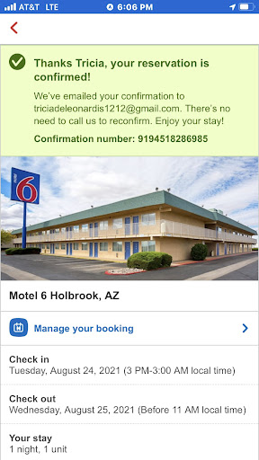 Hello - Last evening (Sunday, August 7, 2022) we arrived at Motel 6, Holbrook AZ #4361 at 8:00pm. We are repeat customers; for several years we have stayed at this motel at least 2 times a year when we travel during the summer. We travel from NV to CO with our pets as we are changing houses for 3-4 months. We usually book 2 rooms, one having to be an ADA accessible room for my 90 year old father that we care for. Whenever we have been asked, we have told the desk clerk that we have 6 pets we are traveling with. This has never been an issue until last evening.