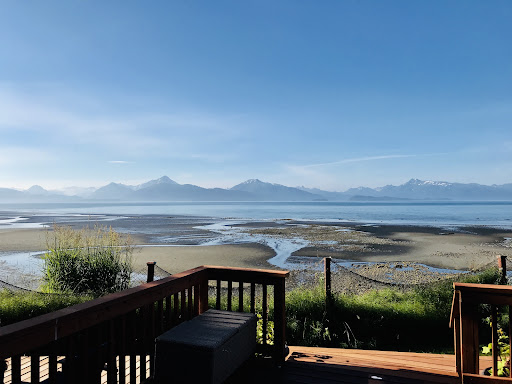 Luckily the weather was warm and beautiful, so we were able to spend barely any time in the room. We enjoyed the stellar view of Kachemak Bay and the surrounding mountains from the seaward patio.