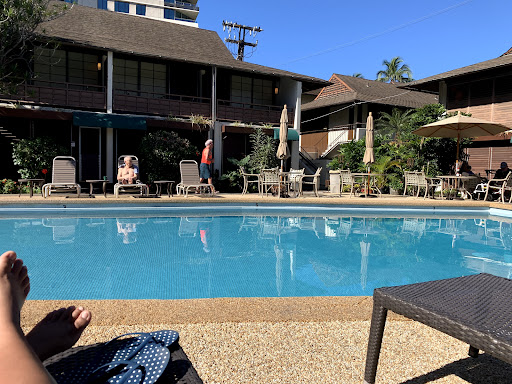Read moreI stayed here for 15 nights in August in a garden suite, most nights solo, but I was joined by my adult son some nights. We had lots of room/privacy with twin beds in the living room and a queen bed in the back room. We cooked breakfast and lunch and went out for dinner most nights. You could certainly cook dinner, as the kitchenette had all the basics- pots, pans, dishes, glasses, utensils. Or heat leftovers in the microwave. We chose to eat out as you are spoiled for choice in Waikiki. ( We ate at the onsite restaurant Wasabi three times. Yum!) The room itself is old but spotless, kept immaculately by the housekeeper, Pilar. The pool is long enough for laps and deep enough to bob up and down. It was almost always in use, but I found less crowded times to swim my laps. I felt very safe here. The staff is friendly and polite and the longtime manager, Ethel, is onsite daily. Lots of multigenerational families present. The location is perfect, a 5-10 minute walk to the beach or public bus stop, two ABC stores within 1-5 minutes. It’s about 1.5 miles to the aquarium, at the opposite end of Waikiki Beach, so really you are walkable to many places. We only needed to rent a car to go to the north shore and Kailua Beach. Surrounded by high rises, it is a...