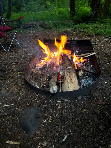 Nice little old 5-site campground built by the CCC. One vault toilet and no potable water. The spring for which it's named does have a pump attached, but the water is certified as not suitable for human consumption. While we found the sites to be a bit dark and damp, there's a nice central lawn area for dogs and children to gambol upon, and it's incredibly convenient to Falls Creek Falls, Trapper's Creek Wilderness Area and other Northwest wonders. Site 1 features a sizable BBQ grill, surprisingly, in addition to the...