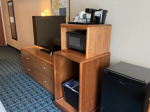 This place was so contemporary And matchy/ beautiful but not to the extent that it was over done. they have that silver grayish kind of tone for decorations and all the decor inside was just like the perfect little cozy/trendy /casual yet classy place -down to every detail. They even designed their bookbinders for various authors like Jackie Collins and ones on the other end of the totem pole like opposite of her so I knew that they were designed to match and not the authors original binders. Everybody was very nice ;the workers )and they would go out of their way to be polite and helpful.Businesslike but approachable and friendly. Just professional to the extent of warm but not informal. And they work in the back in the offices .you ring the bell when you need them which seems like a better and more proper system opposed to the staff just sitting there unable to get any work done because people are always walking by and talking to them if they are just sitting at the front. For security reasons they also have you ring a bell or use your hotel key to enter the front door. You also need it to go up into your rooms. They have free Internet and printing although the printing was down and the pool was not open due to the chaos in the world. The gym was open and they had strict regulations on one person at a time. Even the rooms were carefully placed And every fifth room if possible would be filled so there was plenty of safe distancing.I was only there because I just wanted to get some time on my own and clear my head for a couple days and it served it’s purpose. The only thing I would say ,which isnt their fault is I wish there were more things locally than office and electric buildings. Like more store options in walking distance For food or whatever. Especially for the convenience of walking on the beautiful days. But for those drivers -Five minute drive to gas station stores and Home Depot...