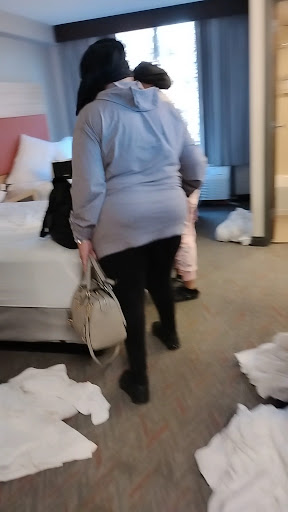 Upon arrival, we entered the room to a horrible smell. We began looking around and discovered that, although the beds were clean, the rest of the room was not. There were crumbs, animal hair, and human hair on the counters, in the drawers, on the dishes, on the floors, and on the furniture. There were no towels in the bathroom. There was no silverware in the drawers (but there were empty to go pack wrappings in there), not enough dishes for all four of us to have a meal, etc. We searched for the source of the smell and discovered an overfilled trash can under the kitchen sink that had not been emptied for who knows how long. (I truly wish I could put a sample of that on here just so readers could know how bad it was.) We looked for the phone to call the front desk and finally found it under a table, unplugged. We attempted to plug it in, only to find that someone had broken off something in the receptacle, but it had not been fixed. (This is something I know, for a fact, would not take much time or effort, because I've had to do it at home.) We also noted significant fraying of the carpet by the door, which had many loops that could have presented a tripping hazard. We walked downstairs to request that someone come to empty the trash, freshen the room, bring towels, and wipe up the crumbs and hair. We were assured someone would come up immediately. They did not. We also requested silverware and were told we would have to use to go packs because "people steal the silverware." We left to grab a bite to eat and, upon our return, discovered that the trash was still there. We asked again and were told someone would be right up. We grabbed our laundry and brought it down to the laundry room. After an hour, we went back up, but the trash was still there, as were the crumbs and hair, and we still had no towels. We made a third request, as well as requesting sheets, blanket, and pillows for the sofa bed, because one of my grandsons wanted to sleep there, plus towels. We got everything but the towels, which we were told were being laundered. (How does a hotel this big not have extra towels and why did it take that long to launder them ???) We returned to the room and decided to place the trash can in the hall. We were tired and wanted to go to sleep. Four requests to remove the trash had not worked. Same for getting towels. The next morning, we told the kids to make sure they hadn't left/lost anything in the room because we were leaving to continue our trip. Since we couldn't cook breakfast there, as we had planned, we would need to stop somewhere for food. They began checking their area for any items they may have dropped and such. Suddenly, one exclaims, "What's this?!" and pulls out someone's WEAVE from the sofa. We told him not to touch it. He said, "But there's more! A lot more." We had him wash his hands, gathered our things, and went downstairs to check out. Mind you, I paid almost $200 for a suite that we should have been able to cook both dinner and breakfast, should have had a clean trash can, and should have had towels, for ONE NIGHT. At check out, there was a different lady at the desk, but the lady from the night before was still there. When I told the morning lady about (she acted like she may have been a manager, as she said she was submitting her reports), she said she was sorry to hear it and would include it in her report. The night clerk, standing across from the desk, seemed like she was angry I was telling the morning clerk about the issues. I'm upset it even happened at all at an IHG property, let alone that I asked four times for it to be remedied and it wasn't! I am an IHG member and I did report it to them, so they are aware. This property needs to be managed and run better....