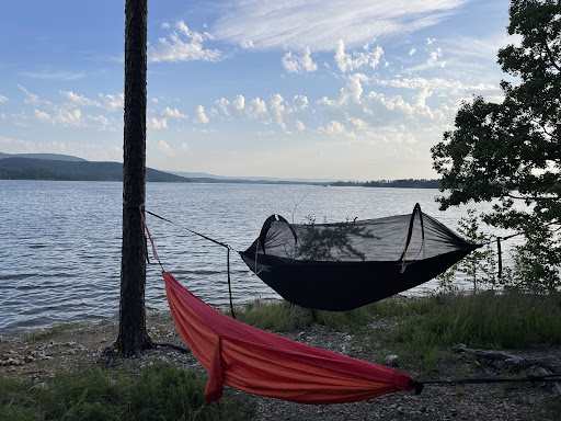 Free camping on lake Quichita. No elect or water. There's dry bathroom. Cement picnic tables. There's room for small RVs. There's also a boat launch across road from campground for all the fisherman, party barges, & skiers. It's a great spot for beginner skiers, boarders & tubers in the cove. No hiking real hiking trails if one needs a trail to explore. Everytime I've been there for the day or camping in the tent there's only been a couple others & there been times I've had the place all to myself which was amazing. This weekend was a different story, it...