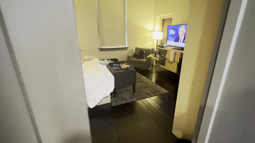 Read moreBy the time we left we stayed here 9 nights. A few positives before the long and extensive list of negatives. The renovation design on this is nice. The staff, to a person, were very kind, courteous, and earnest to do well. However their training, management, and policies seem to be the real issue. Along with staffing. Our room had housekeeping less than half of our 9 days. We had three straight with no appearance of a housekeeper. Management’s continued response was a very nice but clear “it is all your fault”. They believed everything their staff said but failed to check out our claims. One day, the second with no housekeeping, we literally left town! We left at 10 am. Took the do not disturb sign down and nothing happened. Each day the only response from the front desk was that we left the do not disturb up too long. In other words it is our fault. No attempt to ask or try to find accommodation. None. As I said we like how they renovated although right near our door is an old temporary screen with old chairs and tables just thrown behind it. (Pictures and videos below). The bathrooms have sliding doors that literally will wake the dead when you open it. Whoever designed them never stayed a night here. You spend the whole night knowing when just about anyone on your floor uses the bathroom. The bathrooms are small but in ours not one picture yet a huge wall with not one towel bar or any hooks. It is like they just quit at some point, opened the hotel and gave up. There was not one hook of any kind in our whole room. Of course if you don’t get clean towels everyday maybe this was thier plan. We have hard wood floors which are quaint but loud. If you get up in the night everyone you are with is getting up too. Also the paint on these floors is chipping off so we have paint chips all over our clothes. In the bed. Everywhere. (Pictures below). I also give you a photo of our view out our window. Now other than the noises inside the room I mentioned above, we found our room to be amazingly quiet from outside noise. You can stand in the lobby at night and literally not see a staff member for long periods of time. Valet workers do hustle but on the weekends there are not enough of them and we waited on a Saturday and Sunday for our car 35 minutes one day and almost 45 the next. Weekdays were far better. There is a free parking garage two blocks away in which you can enter before 10 pm and after 6 am and leave anytime. You will save a lot of time and money using it if you can. We are Gold Honors members. This was never mentioned. We were not told, as is supposed to happen, that we have a daily credit or something. Nothing. In fact when I called 48 hours before we arrived just to say our flight would be later and with the drive we would be late I was told by the front desk and I quote, “you may want to try to get here sooner or call that day to make sure you get the room you reserved” EXCUSE ME! This place had $3300 of my money for two months prepaid and yet I was told I needed to get there early or call ahead to make sure I get the room I reserved! Just ridiculous. And to top it off when I checked out they attempted to charge me for the entire stay again. I will not be staying there again. I suggest you do the same