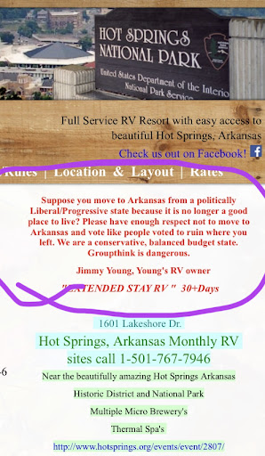 Read moreYoungs Lake Shore RV resort is always so much fun to stay at. It's located right on Lake Hamilton and has a boat ramp. They rent kyacks and canoes as well. It's one of the coolest places to stay in Hot Springs! Last time we were there, we stayed in the cabin. It was right on stokes creek and beautiful. Loved sitting on the porch having coffee in the morning, watching the birds. The fishing is even out of this world, if that's your thing. They have been pulling some really big catfish out lately. I think you can even camp right out by the lake. Downtown Hot Springs is really cool, lots of history. Youngs RV resort is about 10 minutes from town. Hope to see ya all there, we always stay when we are...