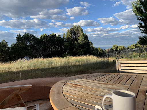 This charming b&b is located in Colorado’s Delta County wine country where we self-developed a biking itinerary to mimic what we typically do in the fall in Europe. We traveled with another couple and created our own routes for biking, hiking and wineries. We are from the front range and were delighted to become better acquainted with the place that supplies cherries, peaches and apples to our front-range grocery stores. We looked for distinctive accommodations for this trip for our enjoyment in the mornings and evenings and came across Maison de Terre. What a delightful and interesting choice! This property is an authentic adobe home on a rural property outside of Cedaredge, CO. It was fully constructed by hand by the owners - from hand-hewn exposed beams to the handcrafted and dried bricks that form this property’s super structure. The guest rooms are on a lower, private level with private patios. The family (owners) live upstairs and everyone shares a common foyer. The experience at this property is one of feeling truly “hosted” – like family who hasn’t seen each other in a while. Marty and Terrie were wonderful hosts, bringing lovely breakfasts to us each morning on trays to the patio outside our rooms. Such a treat! They have created a such a special place - remote from the front range with black skies and brilliant stars, and requiring no plane ride or jet lag recovery. ...