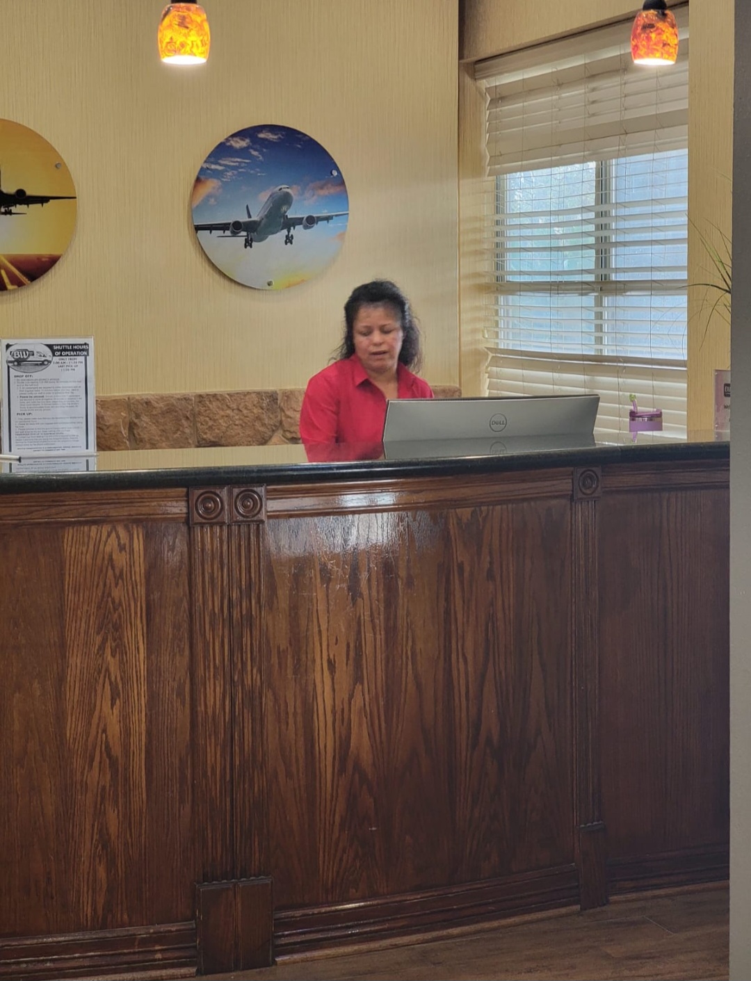 I had a quick 1 night stay here that my travel agent booked for me and we chose it specifically for the shuttle. That being said, I’ve never been to the state, area nor a hotel with an airport shuttle before. This was an entirely new experience for me, but the fact that it was a new experience does not mean it matters any more or less on how the customer service is. I made sure a couple weeks prior to my stay that I called and knew what I needed to do to get the shuttle and was told that when I arrive, to call the same phone number and they would send the shuttle to pick us up. So as soon as I arrived at the airport and got to passenger pick up, I called and the lady on the phone snapped that I need to go to pick up 14 and then call right back before she hung up on me without anything else. Snapped isn’t exaggerating, I had her on speaker and my entire party was shocked at her tone and how she spoke. It was maybe 15 feet to pick up 14 which my party walked to and I called back as I was told. The customer service lady was very rude and snappy again said it’s already there, which nothing was there and I said “no it isn’t but I’m happy to wait for a few minutes” and she said “no it’s already there.” then hung up on me yet again before I could ask further questions like, ‘what does it look like’, ‘does it have your name on it’, or any other question about the Service. Again, this was a new situation for me so I was extra nervous. I then proceeded to wait for about 40 minutes until the van marked with Best Westerns logo arrived. I gave her the benefit of the doubt in that moment, even though it really upset me, and I was worried that I had messed up something, and was scared about my transportation and everything. All of the people with me traveling were also new to this, and were equally upset. When we finally got to the hotel, She was continually rude and snappy with us all at check-in, and we were more than happy to get away from her. I’ve never had a situation at a hotel, where someone had had so much blatant disrespect and vitriol for the consumer. It was truly shocking. At first I thought maybe she had a bad day or something, but then I saw many many other reviews here and elsewhere about the same woman and now I just know she’s terrible at customer service and is not a nice person. I’m sorry in advance to anyone else who books and has to deal with her. I can safely say I will never stay at this location ever again and I will be sure to let my travel agent know not to book this hotel for any of his patrons again as well. Horrible...