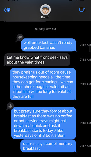 There are probably over 100 people booked into this hotel who need to use fast wifi for this event. I have to connect to my hotspot in my room just to connect to Discord. That night after day 1 of the event I have got my parents badges to get into the event in the morning and left them in the room by my stuff. When I come back the afternoon they are gone. I dont know if they were thought as trash. The next thing is the breakfast choice is absolutely horrible. It is the same thing every day. Eggs, sausage, with cooked potatoes. They have apples and bananas, coffee, tea (I think it is not labeled) and toast. This is absolutely not ok. I had to get my parents to give me actual breakfast from a grocery store because I didn't like the main choices and there was no peanut butter (I am aware of allergies but I don't like jam). This is the worst breakfast service I have ever had and I've been to MANY hotels including Marriott before. Secondly I needed to ask a staff member a question and there was only one person at the desk on the phone. I understand being understaffed but we were waiting to talk with them for at least 5 minutes. The ice machine on third floor was broken and I needed to get ice for a team member who was having a migraine. The night of the 18th around 10:30 I was doing some work on my computer and I head two people loudly talking so I go out and look. It was two staff members talking loudly when they were 10 feet apart from eachother. I asked them to please quiet down and that people are trying to sleep. When I close the door the go back to talking at a normal volume and that is that. I am disappointed in this hotel with their service. They are clearly not ready to handle large parties and don't know how to properly divide each person in a room. I hope you find this review useful to train your staff better so future guests can have a...