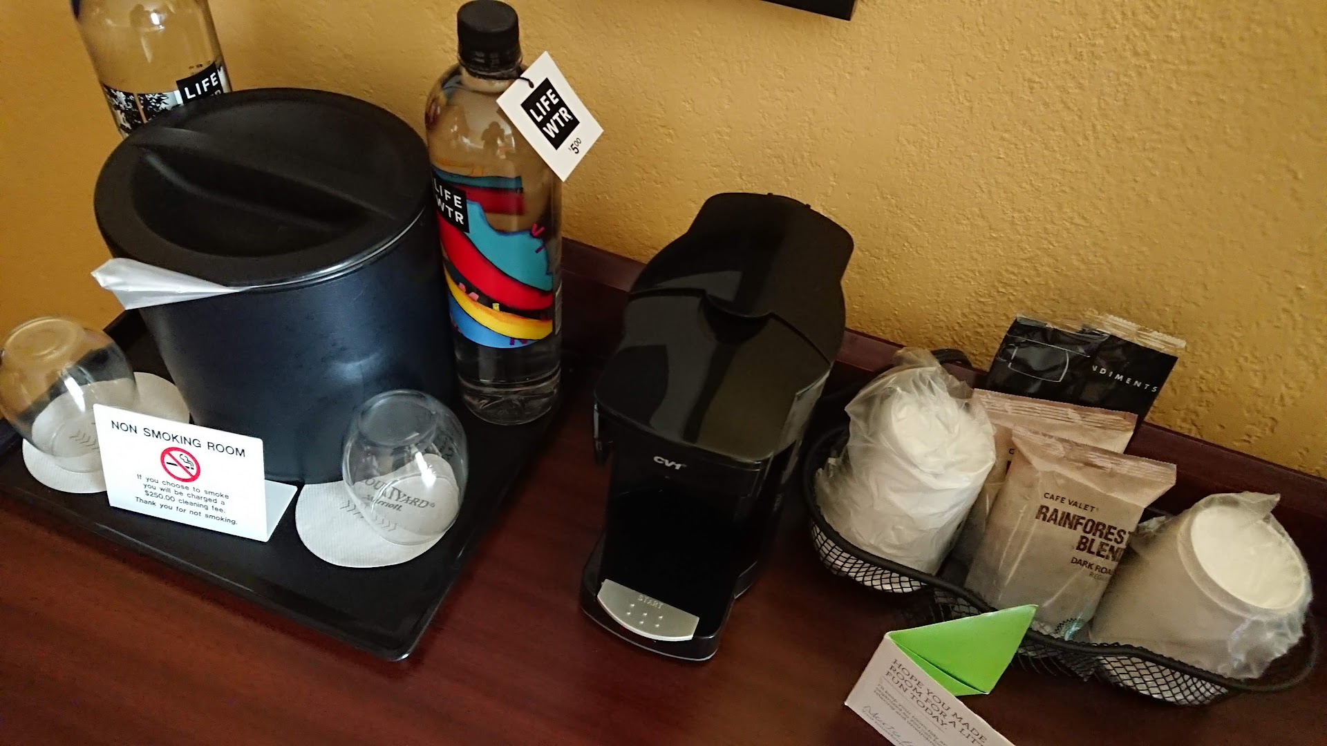 Read moreI have actually stayed at this Courtyard Marriott before this stay and if I had remembered (the poor service and overall experience I had previously) I wouldn't have stayed here again (so that's on me). The staff, although friendly, were either poorly trained or incompetent. Upon check-in I was not greeted as a Silver Elite member or even as a rewards club member at all. I was then informed that I would have to pay $10.00 for parking, which I already knew from the website, so no surprise there. However I was not given the procedures on how to open the electronic drive through gates or the code to the electronic pedestrian walk through gate. After checking in and unloading my car, my wife had to go back in to the front desk to get the procedures on how to operate the electronic drive through gate. Once in the parking lot, I parked next to the parking lot walkthrough gate for my convenience (no code needed leaving the parking lot). From there we take the luggage cart to the room, pull it into the room and boom the cart stops. I'm unable to pull it into the middle of the room bc the dresser and bed frame are too close together for it to pass. The entranceway is too