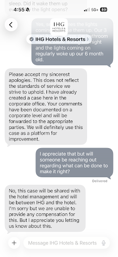 Justina, she was very unprofessional and spoke to me in a condescending manner. I had booked through my IHG app, and used