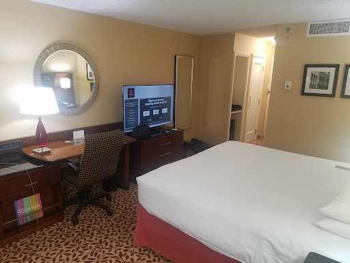 The Marriott Hotel Loop in Houston, conveniently located about 30 to 45 minutes from Houston Hobby Airport, is an excellent choice for business travelers. The hotel offers complimentary Wi-Fi and plenty of seating in the lobby area, complete with charging outlets, catering well to business travelers.