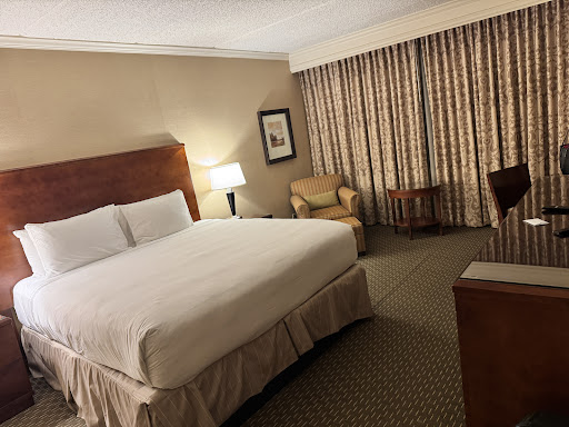 Read moreI have mixed feelings about this hotel. For the most part overall it was great but also had some cons. The location was perfect I was in town for a family thing and my family members live in different areas of Houston so it worked out great. The main floor/lobby of this hotel is really beautiful and smells amazing! They have a koi pond throughout the main floor and you can feed the fish upon request. I did dine at the Cafe on the lake for breakfast and it was delicious. A bit pricey but good quality food and fantastic coffee. The staff were wonderful. The couple things that were on my con list are the bed was too hard for my liking. Just felt like a flat surface on springs and it just made me so stiff and achy. Now if you prefer a firm bed this will suit you. The other issue I had was there was a banging that happened all day and night long. It wasn't just my room I had other family that came into town and stayed there as well on a totally different hall and had the same issues. It was crazy to me that no one has mentioned this before. In the room they have one big duct for the heating/cooling. The vent is a large square on the wall and the banging comes from the duct. My family member thought maybe there was some flap in there opening and closing but I'm not sure that was it. It sounds like if someone swung a door open and it slams against the wall. But the sound varies sometimes it sounds like it's in your room or right on the other side of the wall sometimes it sounded like it was further away etc. Either way this would go on all hours of the night and day 3am it didn't matter. Several times it scared me to death while I was sleeping or falling asleep at night. There's no rhyme or reason to it either you can't time the noise it's random so when you least expect it. I managed since it was just a weekend trip. The shower however was great because they have wonderful water pressure. That was definitely a highlight. The toilet flushed very slow but the shower was very relaxing. The hotel would have been absolutely perfect with a better mattress and no...