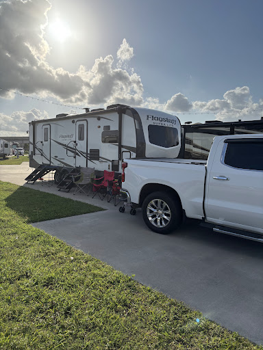 Read moreReally love this RV Park!! Beware: due to road construction, it's tricky to find (and delivery people may have a hard time). The staff has been great, very pleasant and helpful. The office will contact you if there's a package/delivery (super helpful). The lots are all new concrete and wider than I've seen at a rv park. There are no shady spots but are several lots that back-up to tree line 👍The trash is near entry but they offer pickup services (on certain days) which is very helpful! The facilities are all (new) really nice: the laundry accepts quarters and you can use an app to pay electronically (nice as it gives you status). The bath house has large showers 👏 with great water pressure. There's also a nice workout room and lounge area. There is wifi but the signal isn't strong enough to reach all over the park (same in all places I've stayed). Added bonus: There's a night guard on duty,.. makes regular rounds on golf cart, ect. Nice to know someone is keeping watch! Also, the park has (accent) lights strung across the park which I really appreciate. Easy commute to Medical City yet far enough that it's quiet,...except for a little traffic on...